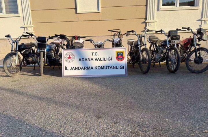 Adana'da jandarma takımları, plakasız ve şasesi kazınmış 8 motosiklet ele geçirirken, 6 şüpheliyi de...